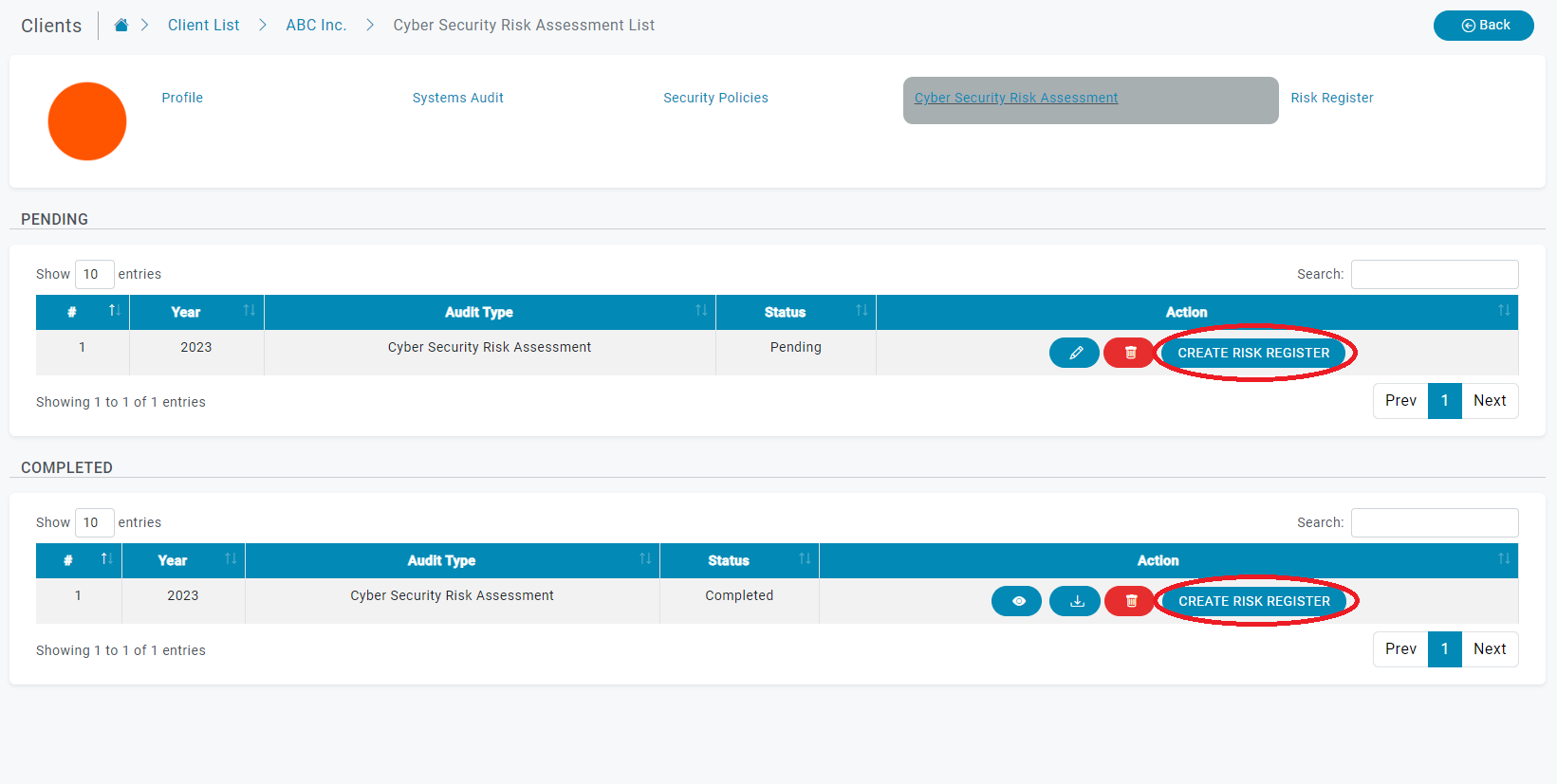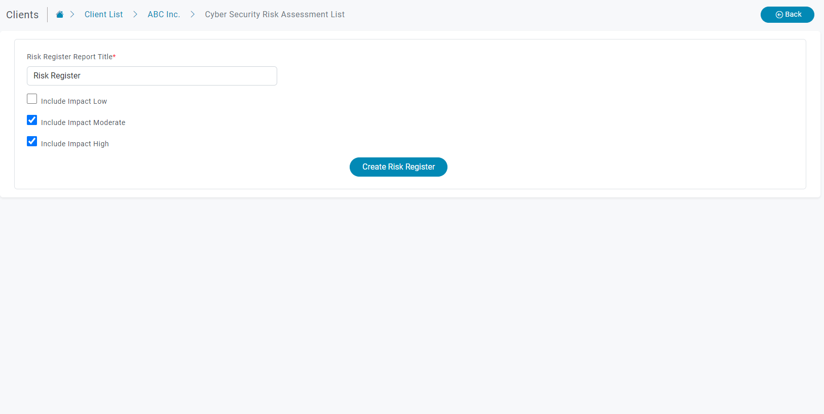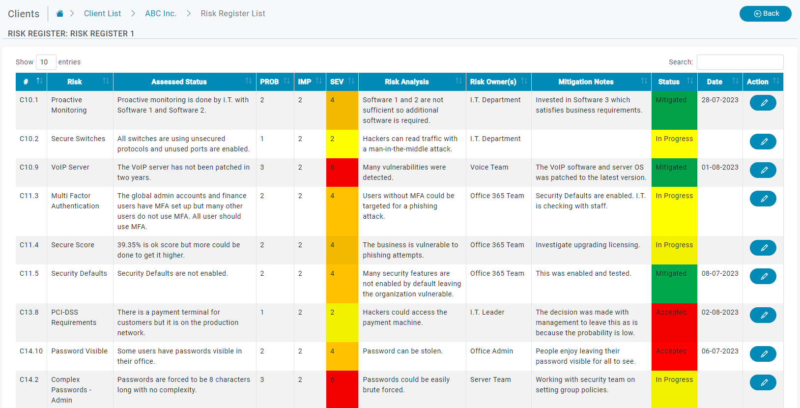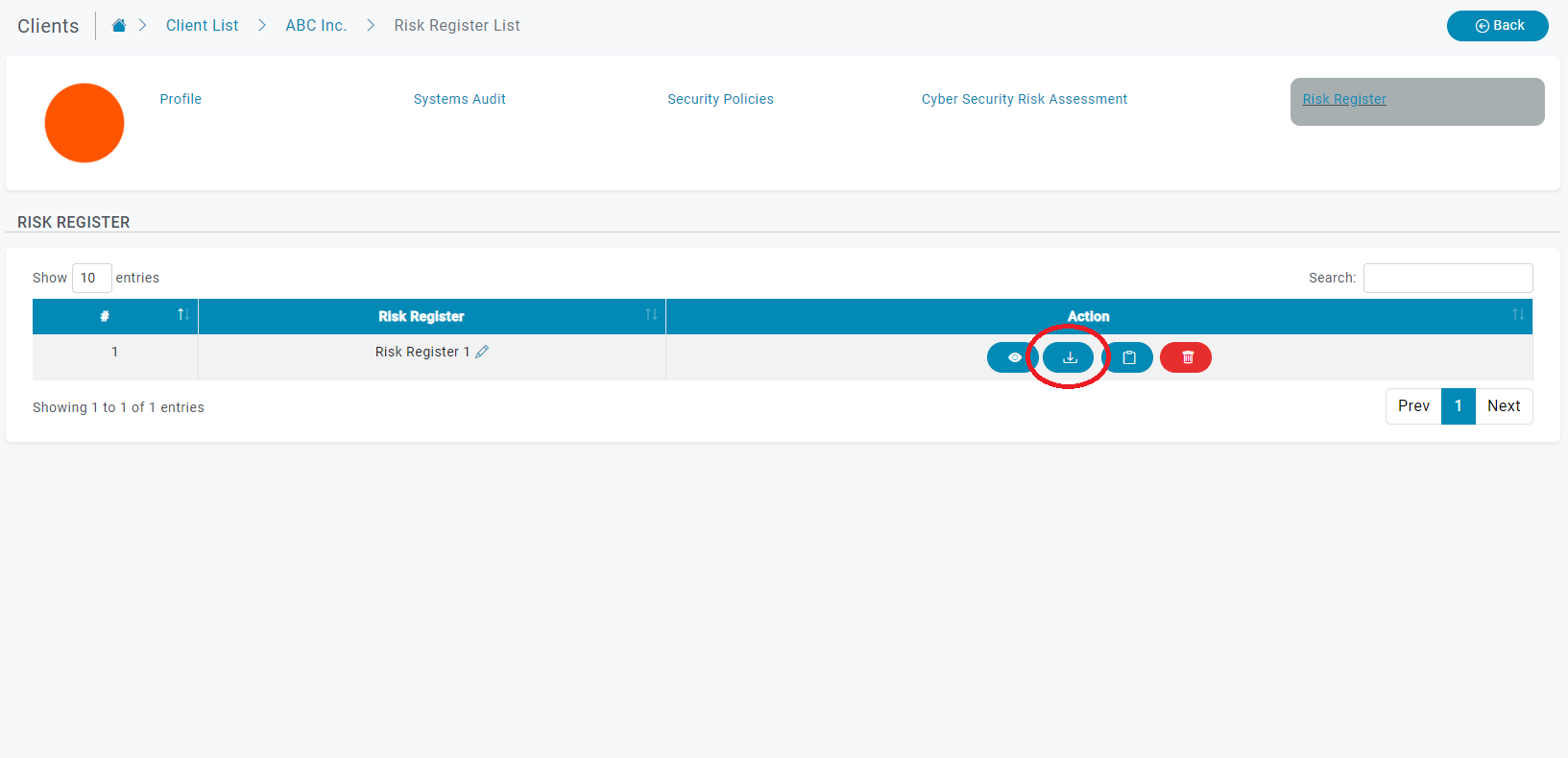 After the cyber security risk assessment has been saved, all the low to high priority risks are automatically added to the risk register.