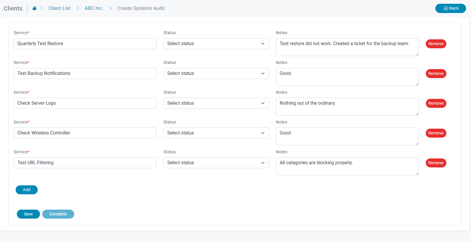 Create a checklist of the systems that needs to Read More >
