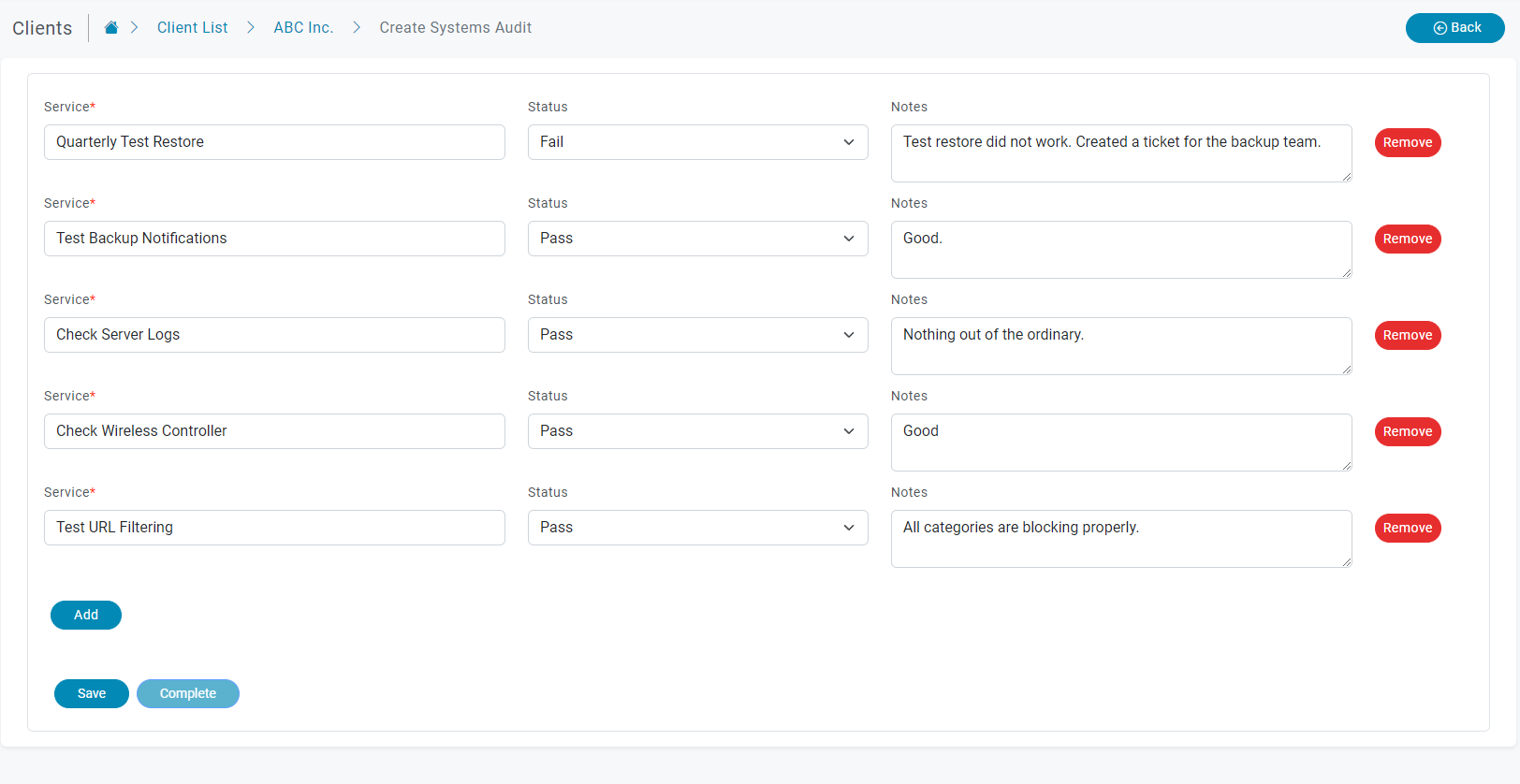 When conducting an audit of the corporate systems, cyber professionals follow a systematic approach. They begin by creating a checklist to ensure all necessary elements are covered during the evaluation. As they proceed, they add systems to the checklist, create detailed notes to capture important findings and observations, set the status of each system to track progress, and ultimately save the report for future reference and documentation of the assessment’s outcomes.